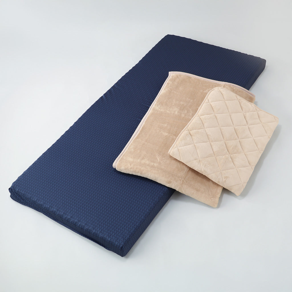 独自の凹凸構造が身体全体の圧力を分散、身体にやさしい健康敷きふとんとあったか毛布、敷きパッドをセットにしたお買い得な福袋です。
