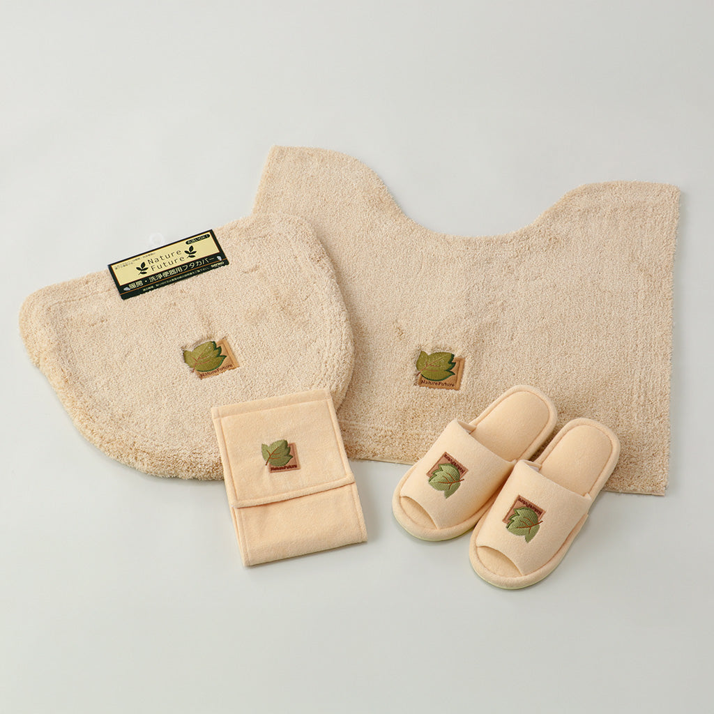 ナチュラルカラー&シンプルデザインのトイレマット。どのようなトイレ空間にも合わせていただけ、優しい綿の肌触りと風合いを感じていただけます。