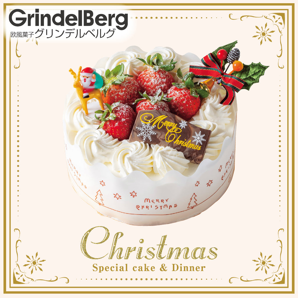 グリンデルベルグ定番のXmasケーキ。 県内産卵を使用したふわふわスポンジにコクのある生クリームと苺をサンドしたショートケーキです。