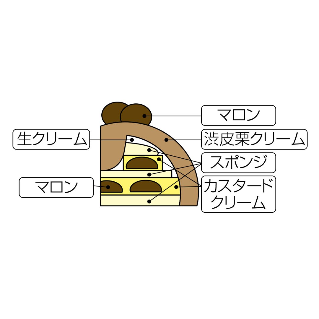 風味豊かな渋皮栗クリーム、軽やかでコクのある基本の生クリームやカスタードクリーム、県内産卵使用のふんわりスポンジケーキの組み合わせ。■サイズ5号(約15cm×高さ10㎝)