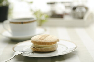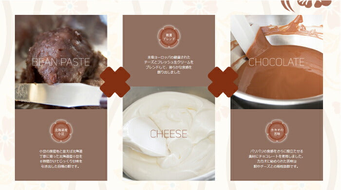 和風と洋風の絶妙な組み合わせ!ありそうでなかった出会い!内側にチョコレートをコーティングした最中の皮であんことレアチーズケーキをサンドしました!