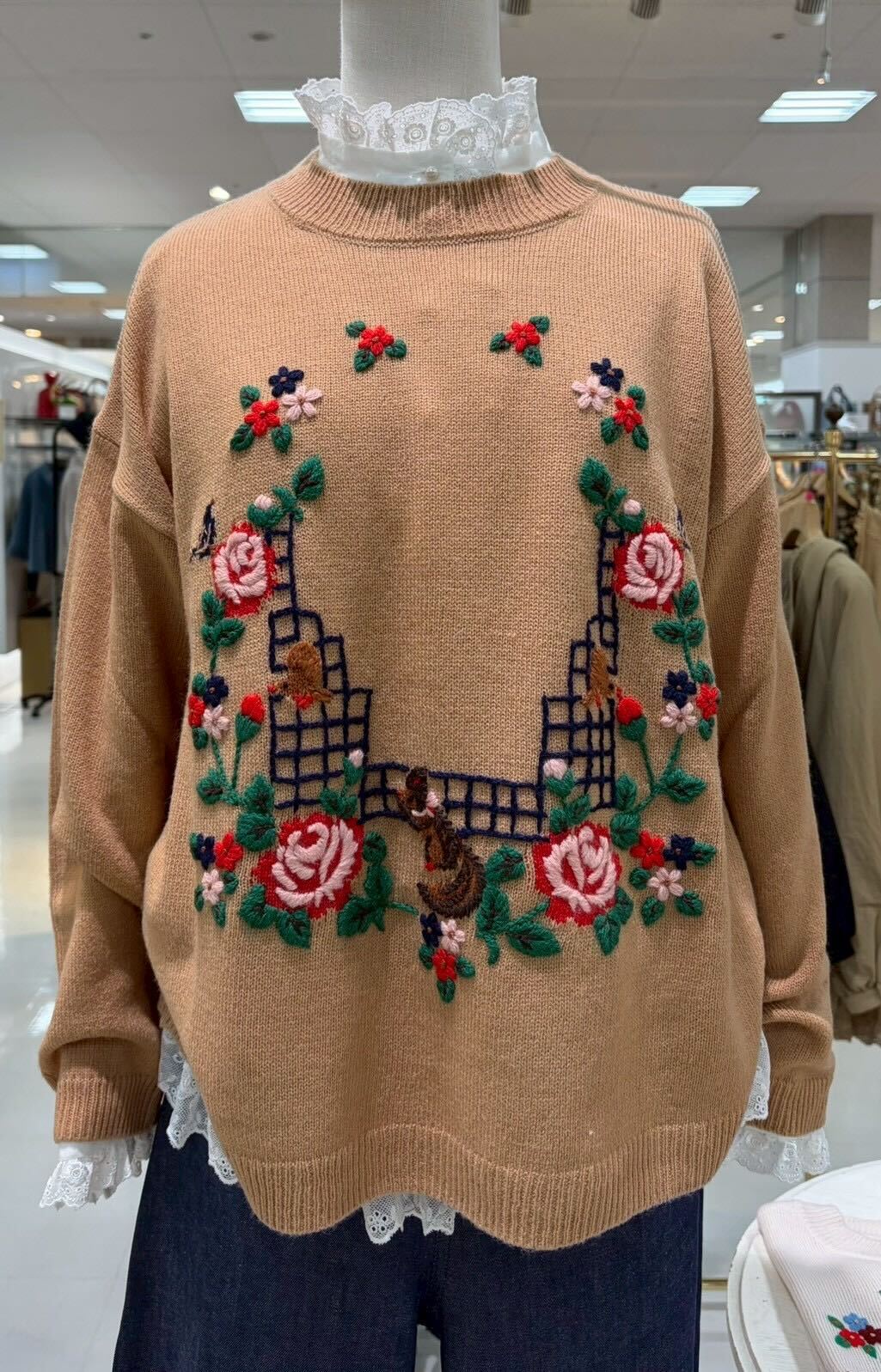 素材・手刺繡 アクリル75%・毛15%・ナイロン10%  中国製"