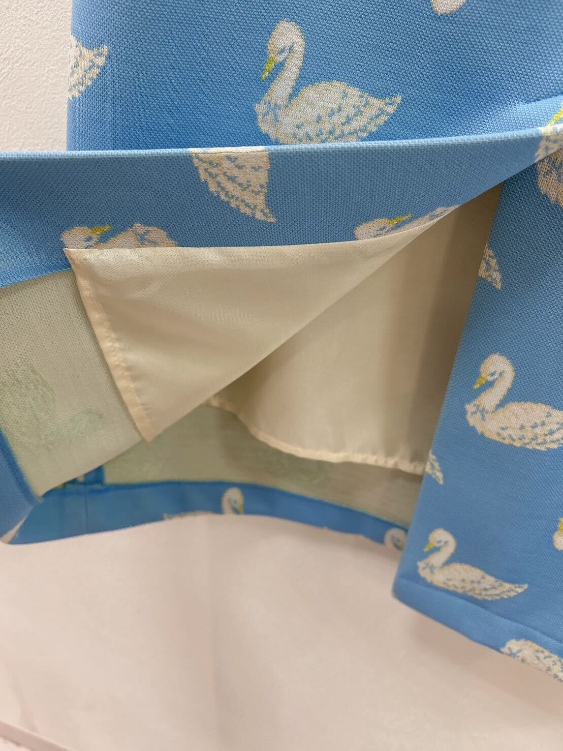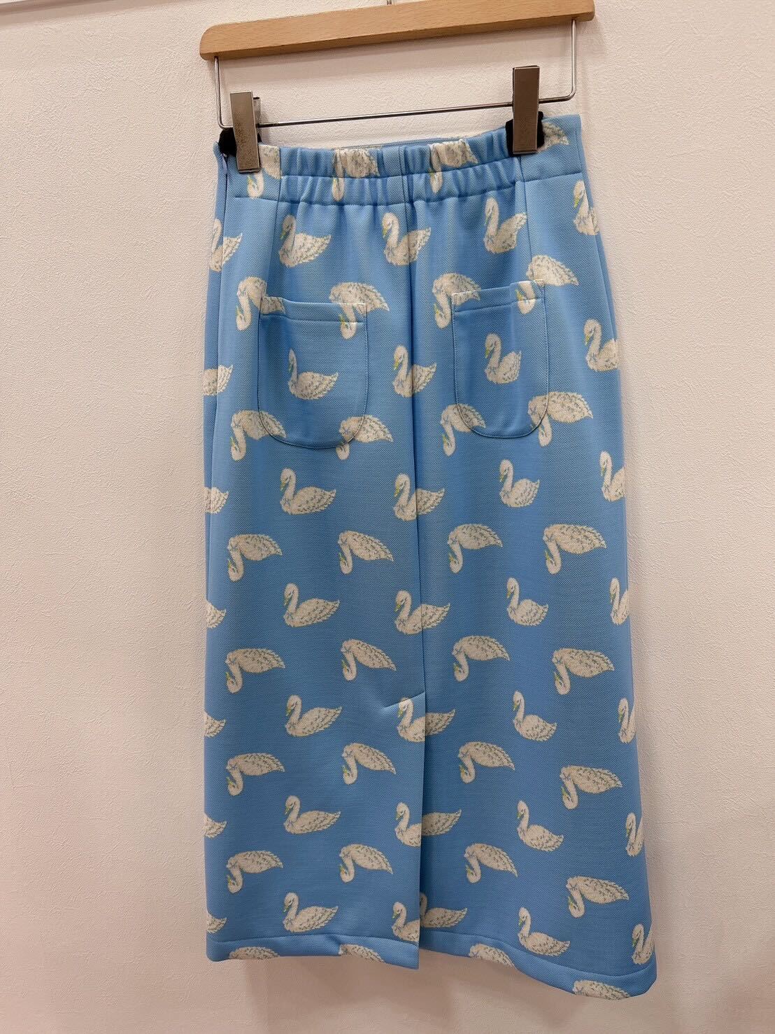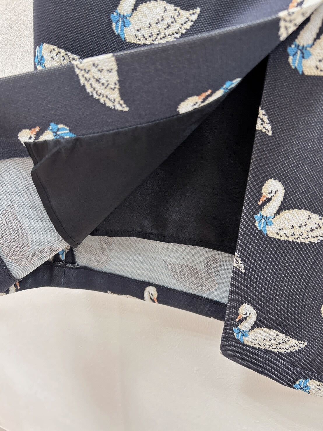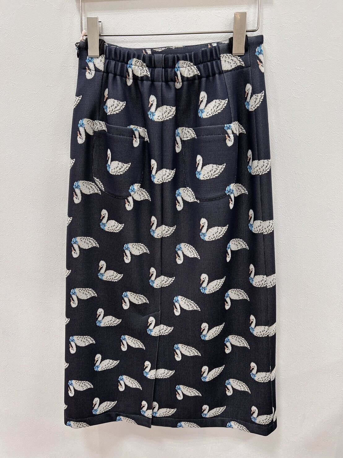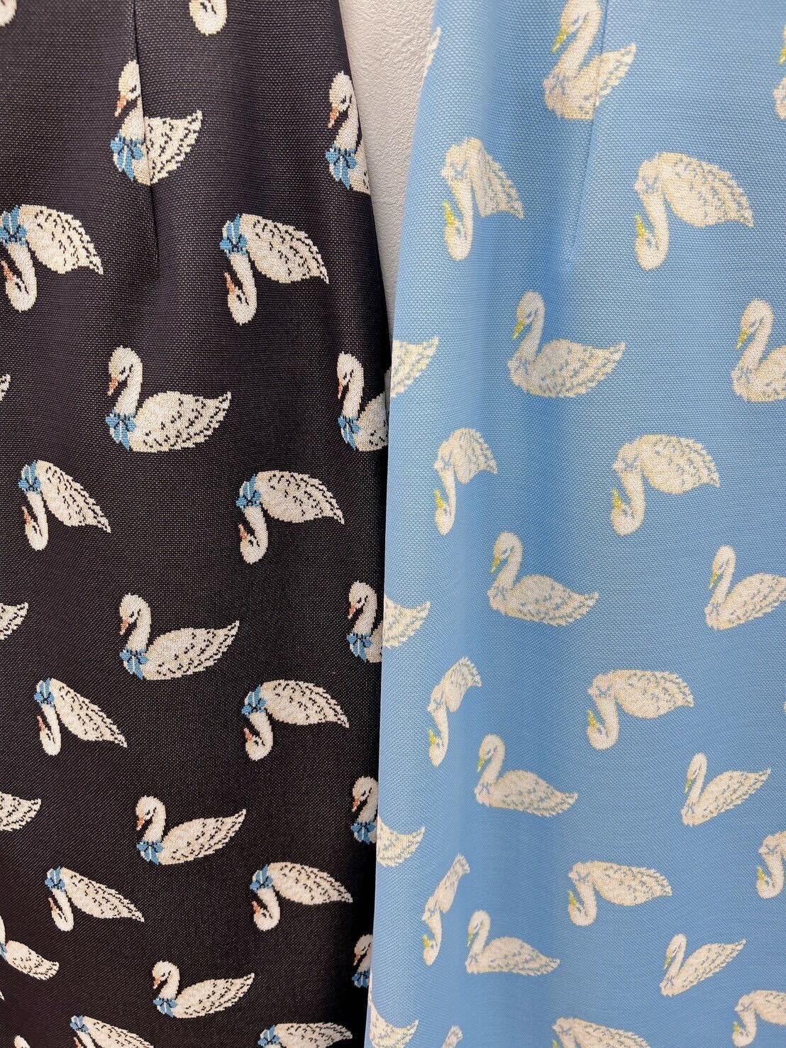 素材・スワン柄ダブルジャガード 表地:ポリエステル100% 裏地:ポリエステル100% 日本製※裏地なし ※ウエスト調整紐なし※黒色は、完売いたしました。